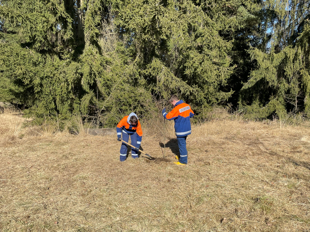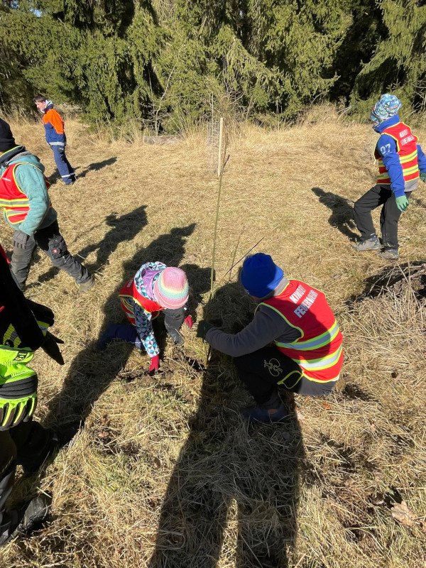Mit tatkräftiger Unterstützung unserer Kinderfeuerwehr Löschraketen haben unsere Jugendlichen insgesamt zehn Ahorn- und Eschenbäume für den guten Zweck gepflanzt.