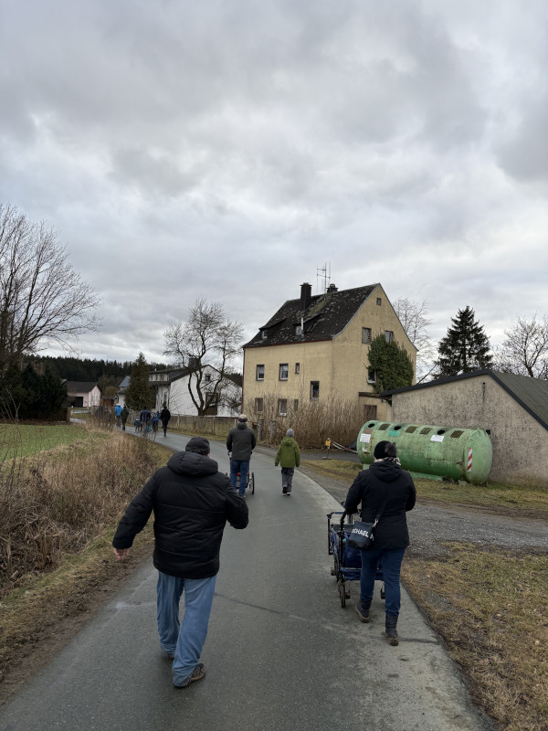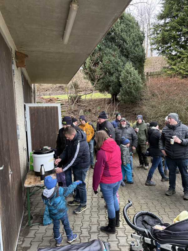 Der Treffpunkt war am Gerätehaus, von wo aus die Wanderung über Waldfrieden nach Oberhartmannsreuth führte. Dort konnte man sich bei einer kleinen Stärkung in Form von Glühwein und Plätzchen gemütlich stärken. Anschließend ging es über Oberhöll zurück zum Gerätehaus.