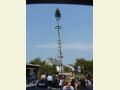 Zuvor hatten zahlreiche "Schaulustige" beobachtet, wie die Feuerwehrmänner mit Schlepper, Seilwinde und einer ordentlichen Portion Muskelkraft den stattlichen Maibaum aufrichteten, der fast 22 Meter in den Himmel ragt und Wappen wie Bilder aus den Ortschaften und von in der Gemeinde vertretenen Handwerkern und anderen Firmen zeigt.
