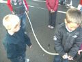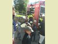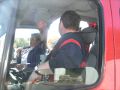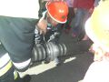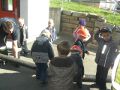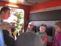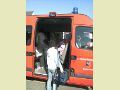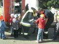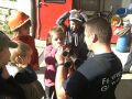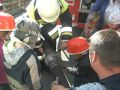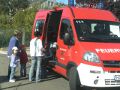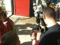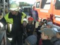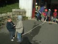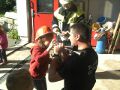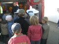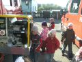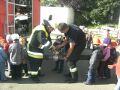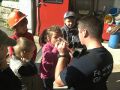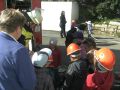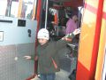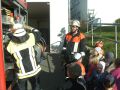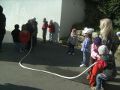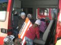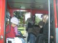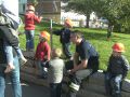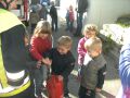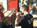 Die Kleinen erlernten wichtige Kenntnisse zum Verhalten im Brandfall, durften aber auch einmal selbst zum Feuerwehrschlauch greifen und natürlich im Feuerwehrfahrzeug platznehmen.