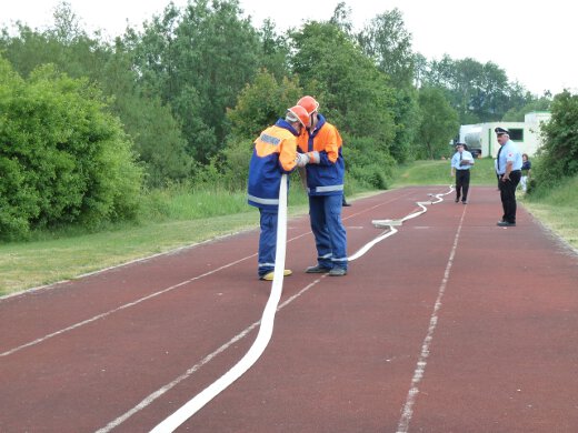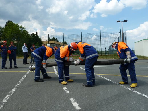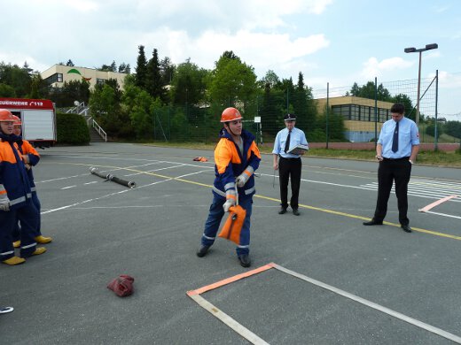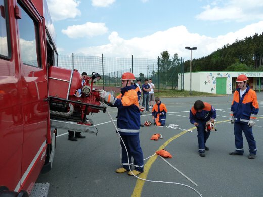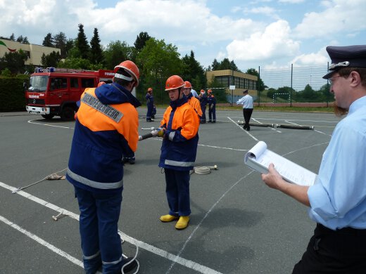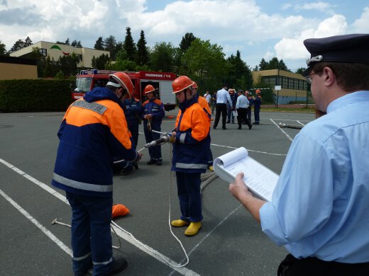 Unter den wachsamen Blicken von KBI Thomas Reuther und den KBMs Rüdiger Lang und Marc Fischer zeigte der Feuerwehrnachwuchs, dass er mit Leinen, Schläuchen und allerhand anderem Gerät umzugehen weiß. Aber auch ein schriftlicher Teil mit Testfragen musste absolviert werden.