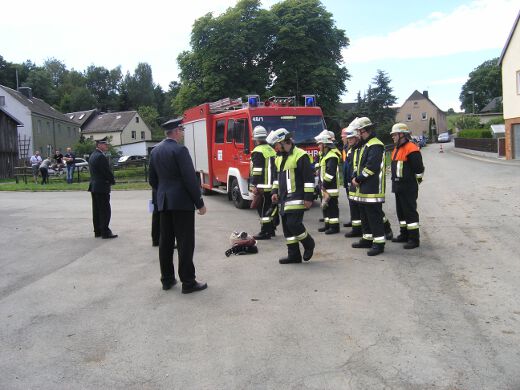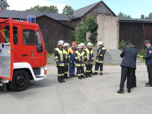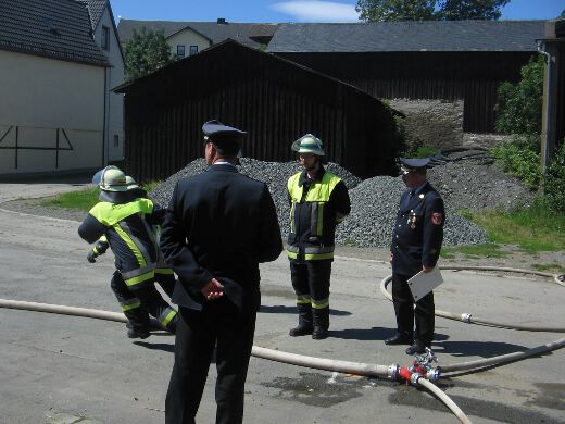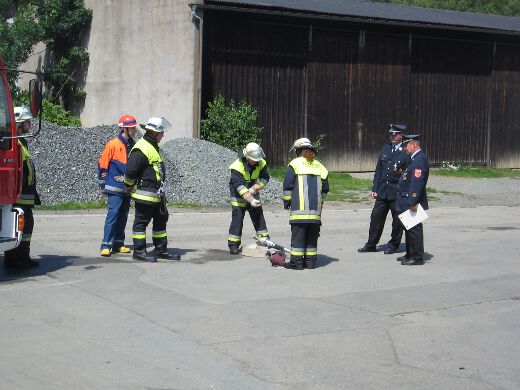 Unter den kritischen Augen von Kreisbrandinspektor Thomas Reuther und der Kreisbrandmeister Philipp Kemnitzer und Gerhard Schmidt stellten die Kameradinnen und Kameraden ihr Können unter Beweis.