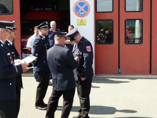 Im Anschluss fand vor dem Feuerwehrgerätehaus in Gattendorf die Übergabe der erworbenen Abzeichen statt. Bürgermeister Stefan Müller und Kommandant Christian Steinhäußer bedankten sich bei den Teilnehmern für ihren Einsatz und gratulierten zur bestanden Prüfung. Auch KBI Reuther brachte seine Anerkennung zum Ausdruck und wünschte sich dass die erworbenen Kenntnisse möglichst selten im Ernstfall zur Anwendung kommen müssten.