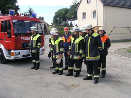 hinten: Stefan Funk, Andreas Funk, Benedikt Müller, Oliver Markstein, Tobias Steinhäußer, Harald Frötschel, Tobias Rödel, Jeffrey Schmittnägel, Kommandant Christian Steinhäußer