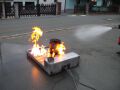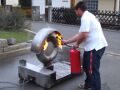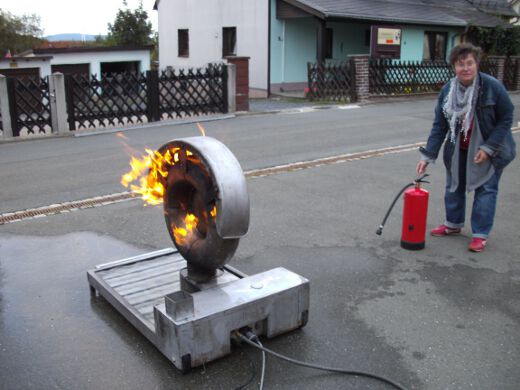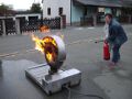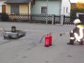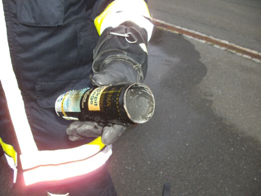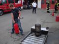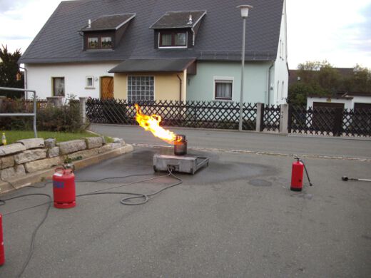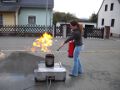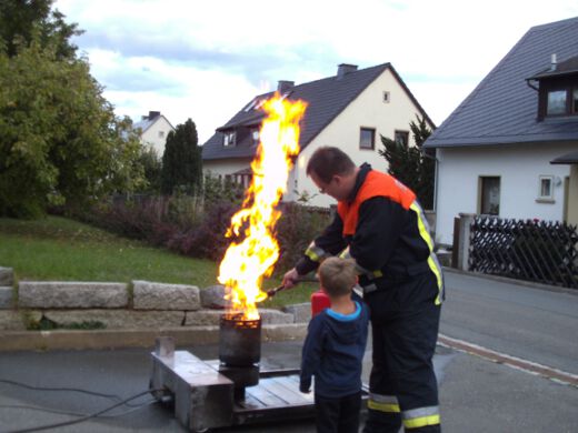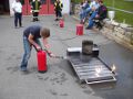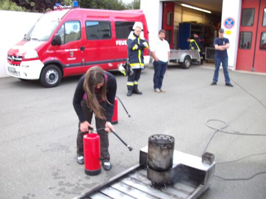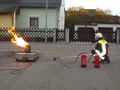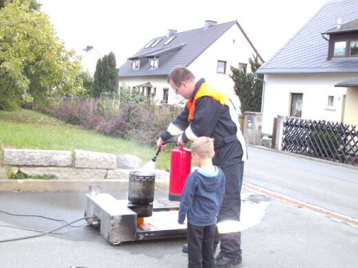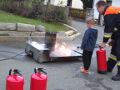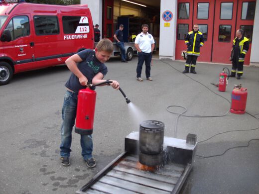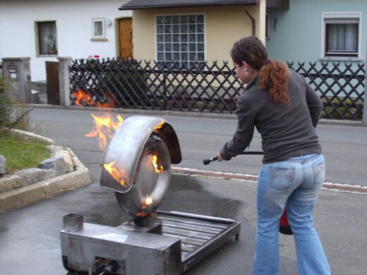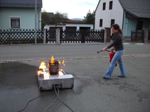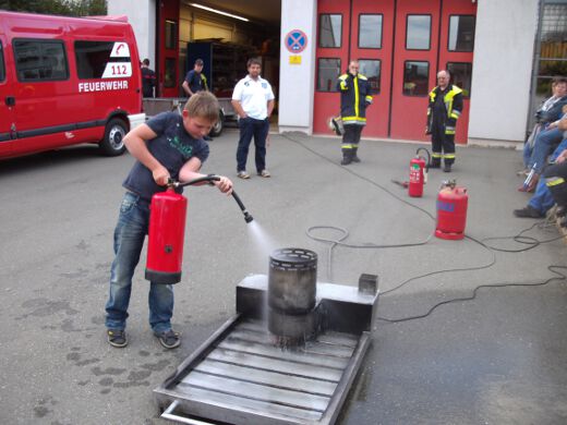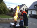 So galt es einen einfachen Mülltonnenbrand, einen Flüssigkeitsbrand sowie den Brand eines Fahrzeugreifens zu bekämpfen. Außerdem wurde eine Fettexplosion und die Explosion einer leeren Spraydose gezeigt.