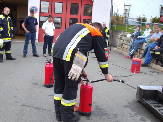 Für alle interessierten Bürgerinnen und Bürger der Gemeinde boten die Kameradinnen und Kameraden der Feuerwehr Gattendorf kürzlich die Gelegenheit einmal selbst Hand an einen handlesüblichen Feuerlöscher zu legen und eigene Erfahrungen im Umgang mit diesem doch eigentlich so alltäglichen Gerät zu sammeln.