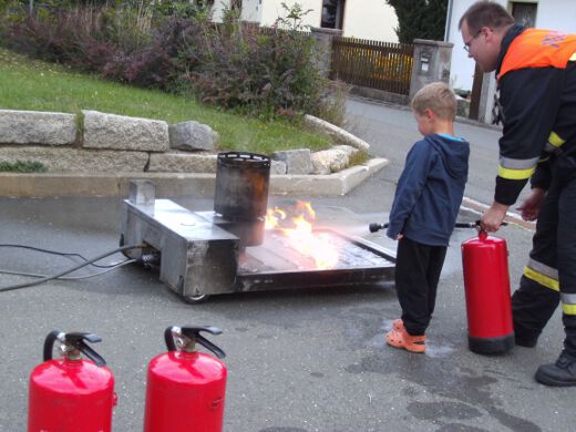 Mittels des Firetrainers des Kreisfeuerwehrverbands Hof der vor dem Gattendorfer Feuerwehrgerätehaus aufgebaut wurde, konnten verschiedene Brandszenarien nachgestellt werden. Nach einer kurzen Einweisung, durften die Besucher dann auch gleich selbst Hand anlegen und eigene Löschversuche unternehmen.