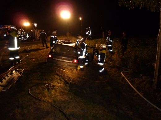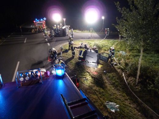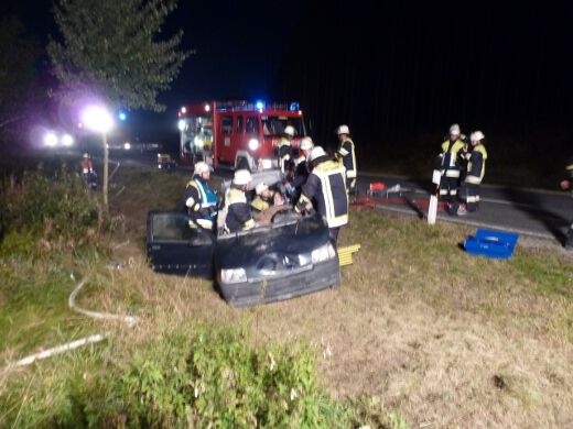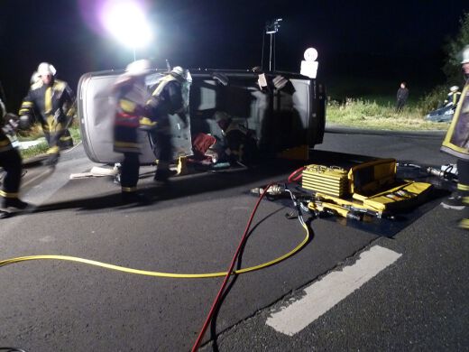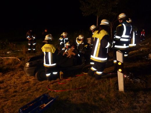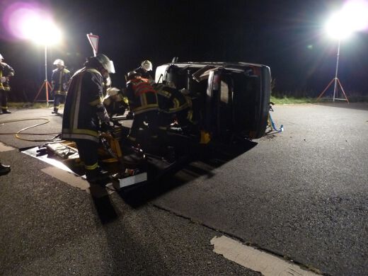 Daneben galt es natürlich noch eine Verkehrsabsicherung zu erstellen und die Einsatzstelle auszuleuchten. Schließlich wurden mit Hilfe hydraulischer Rettungsgeräte Zugänge zu den Verunfallten Personen geschaffen, alle Verletzen gerettet und an den Rettungsdienst zur weiteren Versorgung übergeben.