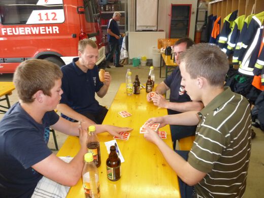 Bei Kaffee und Kuchen und allerlei Gegrilltem ließen die Feuerwehrler den Tag gemütlich ausklingen.