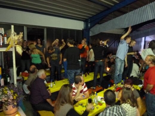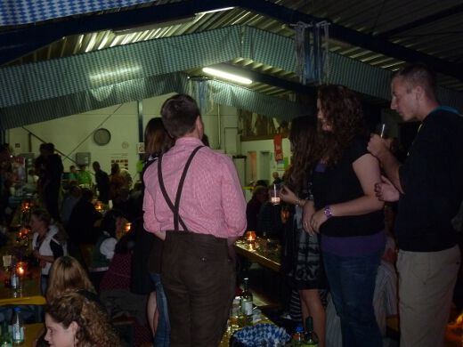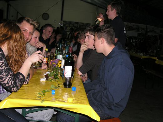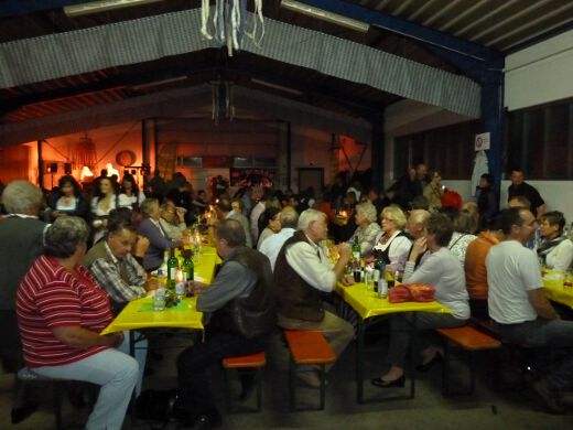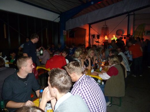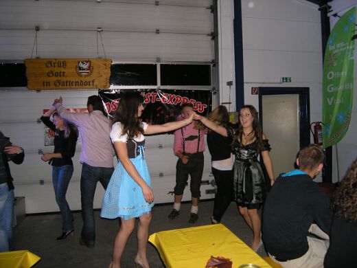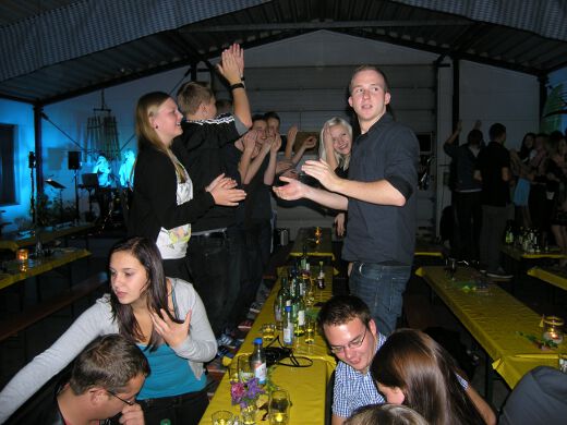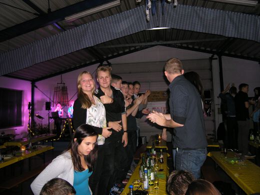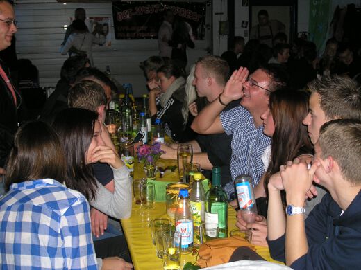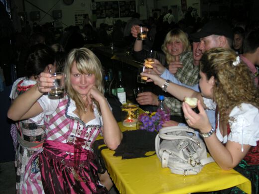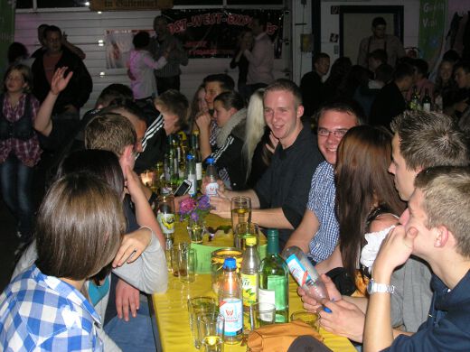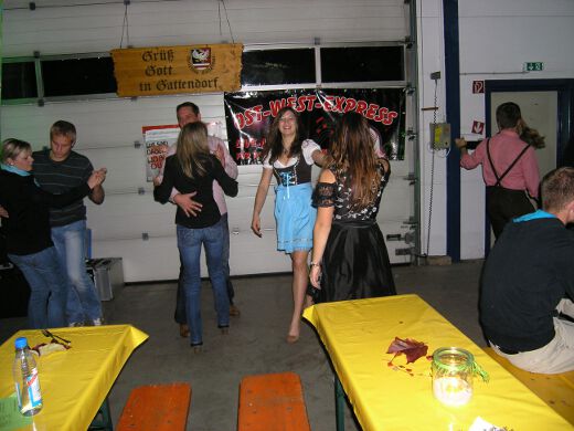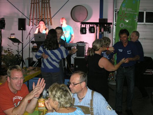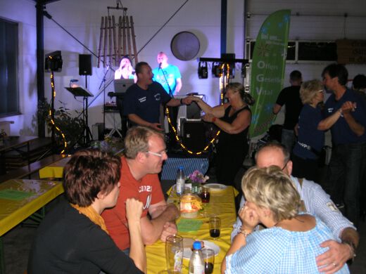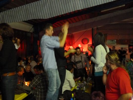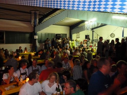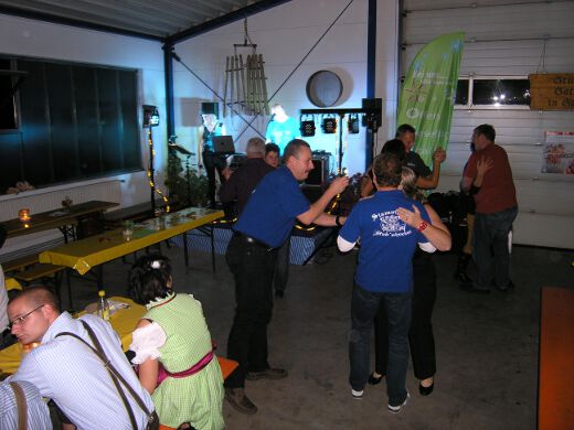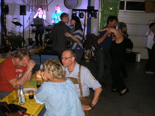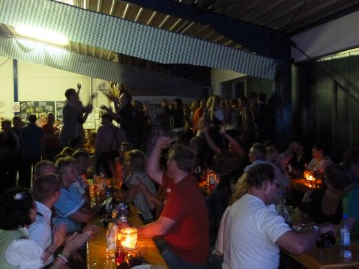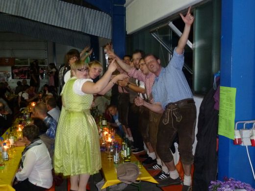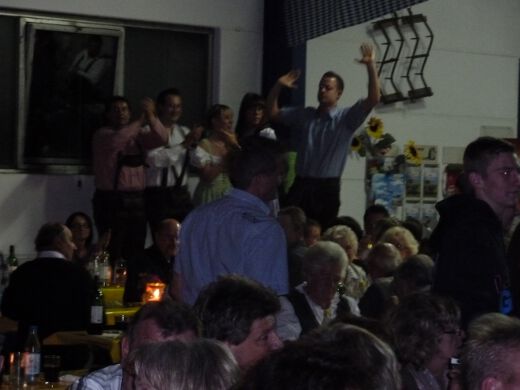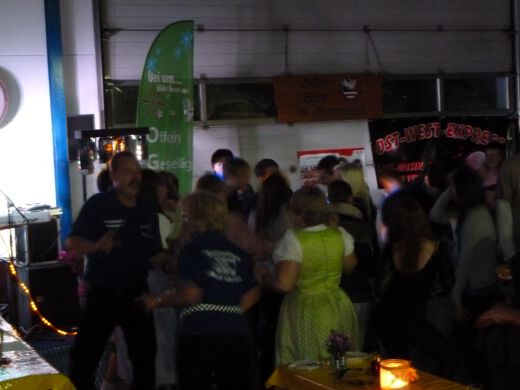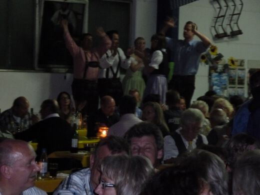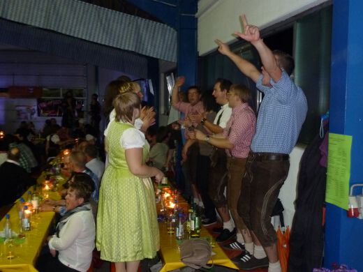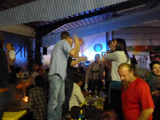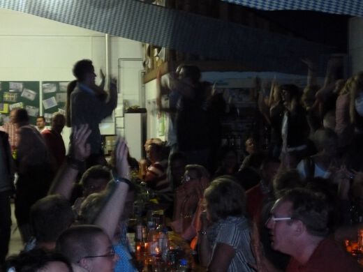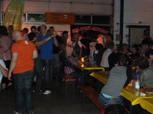 So gestärkt stürmten Jung und Alt die Tanzfläche oder erklommen die Bierbänke. Zur fetzigen Musikauswahl des Ost-West-Express, die von Schlagern über Oldies bis zu aktuellen Partyhits reichte, wurde bei ausgelassener Stimmung bis tief in die Nacht getanzt und gefeiert.