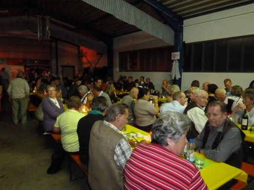 In der vollbesetzten Festhalle ließ man sich allerhand zünftige Brotzeiten, wie hausgemachten Zwiebelkuchen, Kochkäse oder geräucherten Schinken schmecken und genoss dazu die vielfältige Auswahl heimischer Weine.