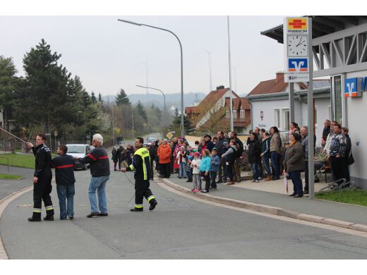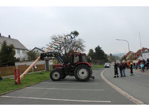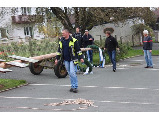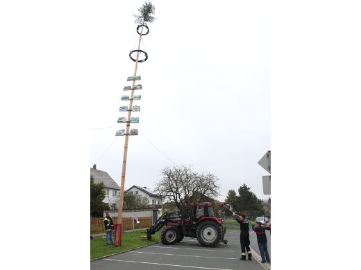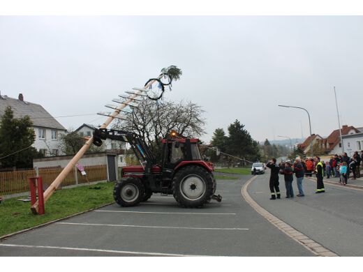 Bei bewölktem Wetter, aber dennoch mit ungetrübt guter Laune stellten die Kameraden der Feuerwehr Gattendorf in diesem Jahr den Maibaum in der Neugattendorfer Ortsmitte auf. Nach getaner Arbeit wurden sie dafür von den zahlreichen neugierigen Zuschauern mit anerkennendem Beifall bedacht.