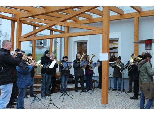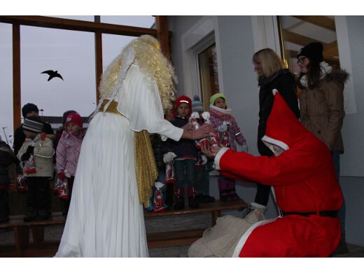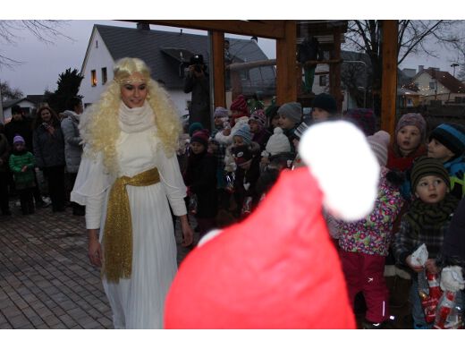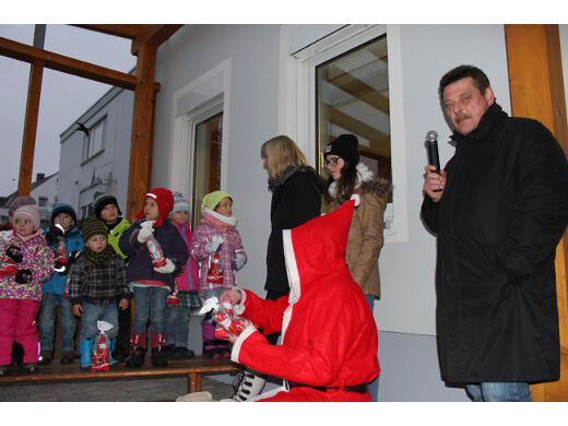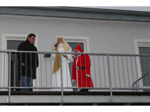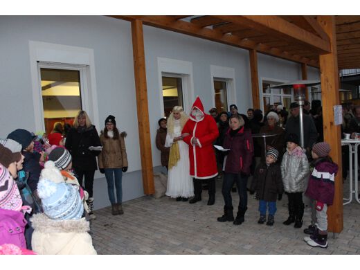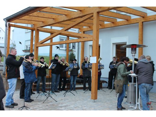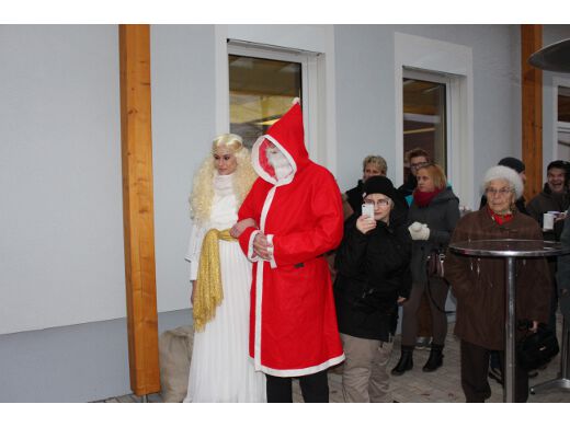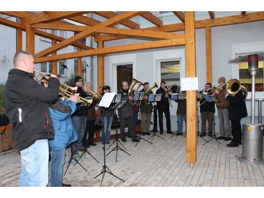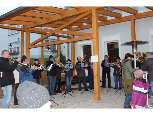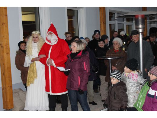 Für vorweihnachtliche Stimmung sorgten die Bläserinnen und Bläser des Gattendorfer Posaunenchores sowie die Kinder vom Kindergarten Große Au. Ein besonderer Höhepunkt war auch der Besuch des Weihnachtsmannes und des Christkinds.