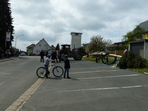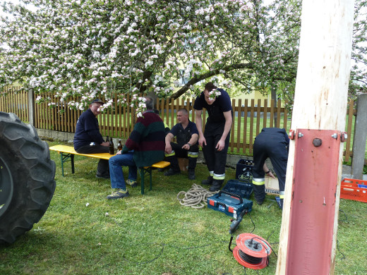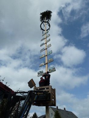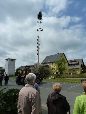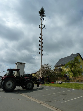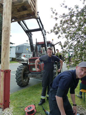 Als besondere Attraktion stellten die Kameraden einen nagelneuen, rund 20 Meter hohen Maibaum in der Neugattendorfer Ortsmitte auf. Der neue Baum war nötig geworden, weil der alte - entgegen jeder Tradition bereits knapp zwei Wochen vor dem 1. Mai - gestohlen worden war. Den Gattendorfern blieb so mehr als genügend Zeit einen neuen Maibaum zu schlagen, was aufgrund des Alters des bisherigen Baumes ohnehin bereits angedacht war.