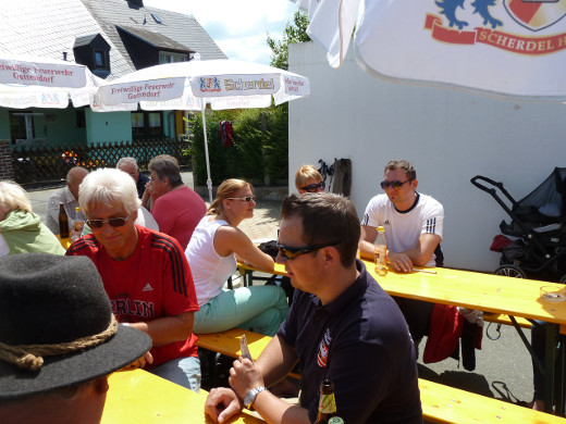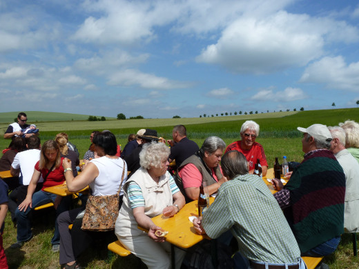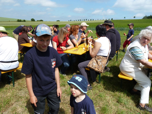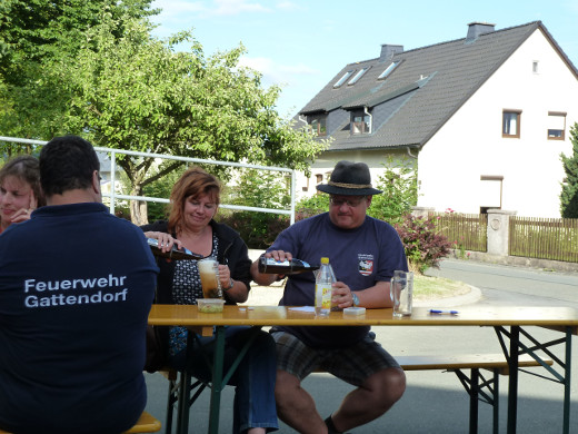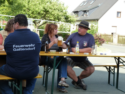 Auch in diesem Jahr nutzten die Mitglieder des Gattendorfer Feuerwehrvereins den Fronleichnamstag für ihre traditionelle Sommerwanderung. Die Strecke führte vom Feuerwehrgerätehaus in Neugattendorf nach Schloßgattendorf und von dort weiter zu den Windkraftanlagen Richtung Regnitzlosau. Nach einer kurzen Brotzeit ging es weiter an Vierschau vorbei und an der Autobahn entlang nach Kirchgattendorf. Von dort spazierte man zurück zum Gerätehaus, wo der Tag in gemütlicher Runde ausklang.