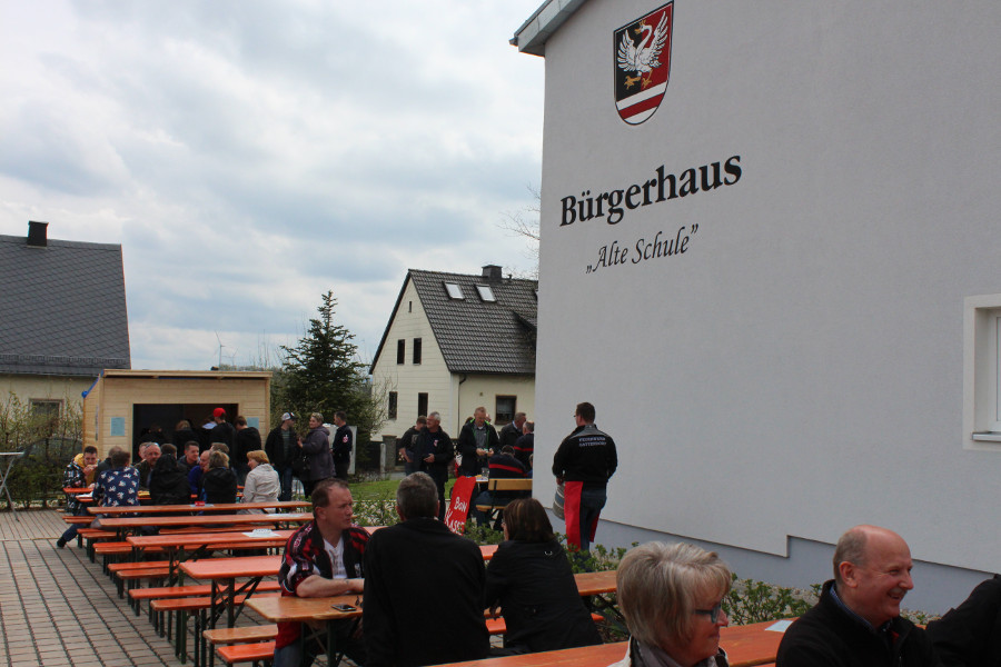 Auf dem Festplatz und in der Turnhalle des Bürgerhauses „Alte Schule“ feierten die Feuerwehrler anschließend mit mehreren hundert Gästen aus der Gemeinde Gattendorf und aus der Umgebung in den Mai. Bei bewölktem Wetter, aber dennoch mit ungetrübt guter Laune verbrachten sie einen gemütlichen Nachmittag.