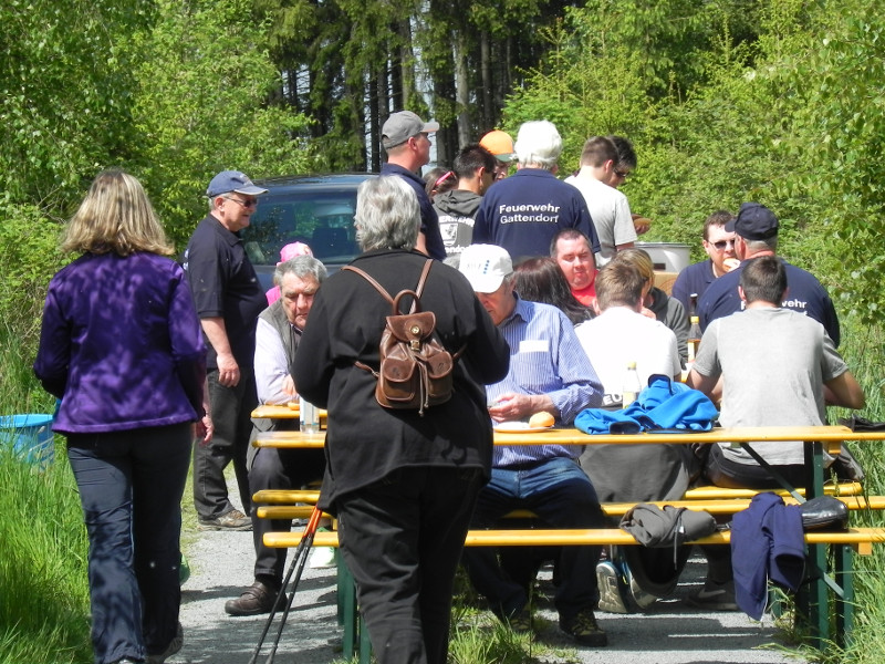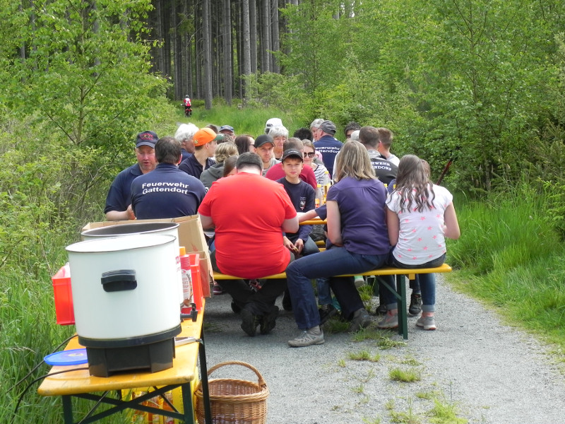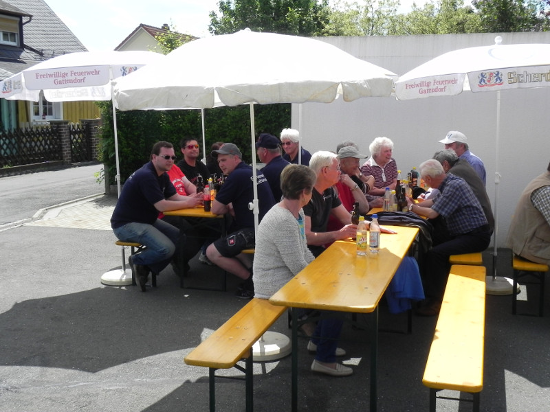 Wie schon seit vielen Jahren trafen sich die Mitglieder des Gattendorfer Feuerwehrvereins auch in diesem Jahr wieder, um den Fronleichnamstag für eine kleine Wanderung durch unsere schöne Gemeinde zu nutzen. Die Route führte vom Gerätehaus in Neugattendorf über Kirchgattendorf ein Stück an der Autobahn A93 entlang. Nach einer kleinen Stärkung ging es weiter nach Schloßgattendorf und dann wieder zum Gerätehaus zurück. Bei Kaffee, Kuchen und leckeren Bratwürsten ließen die Feuerwehrler den Tag gemütlich ausklingen.