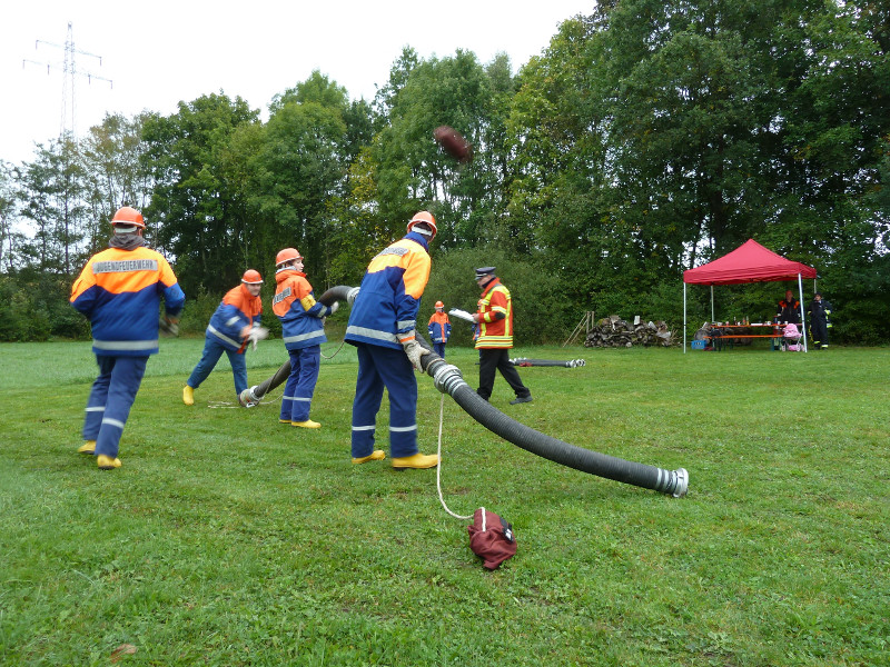 Vier junge Feuerwehrler aus der Jugendgruppe der Feuerwehr Gattendorf nahmen als Marschgruppe am diesjährigen Jugendleistungsmarsch auf Landkreisebene in Martinlamitz teil. An insgesamt zwölf Stationen galt es dabei verschiedene Aufgaben aus dem Feuerwehralltag zu absolvieren. Von grundlegenden Fertigkeiten, wie dem binden verschiedenener Knoten und Stiche oder dem ausrollen von Feuerwehrschläuchen, reichte das Prüfungsprogramm bis zum Aufbau einer Saugleitung und der Durchführung eines Löschangriffs. Daneben galt es bei der Beantwortung von Testfragen und der richtigen Einordnung von Ausrüstungsgegenständen auch das theroretische Wissen zu Beweisen. Nach einer Marschzeit von etwa zwei Stunden konnte der Leistungsmarsch erfolgreich beendet werden.