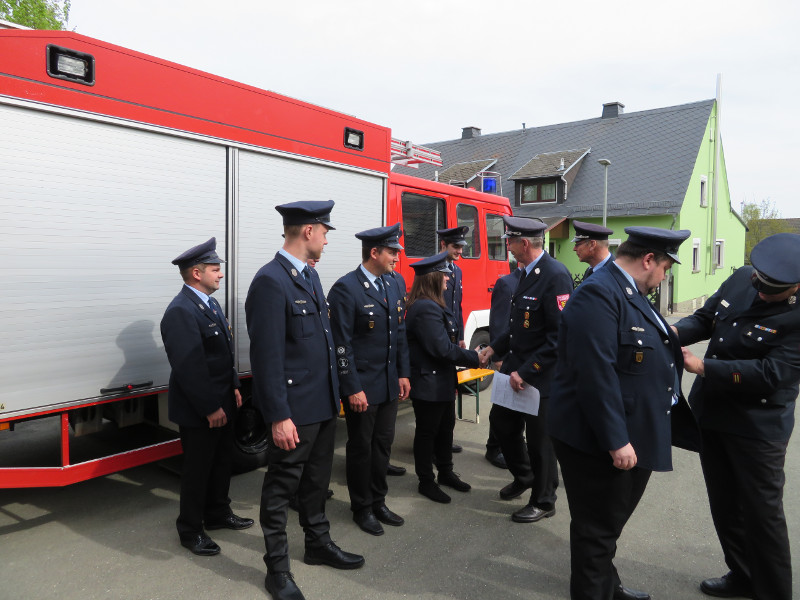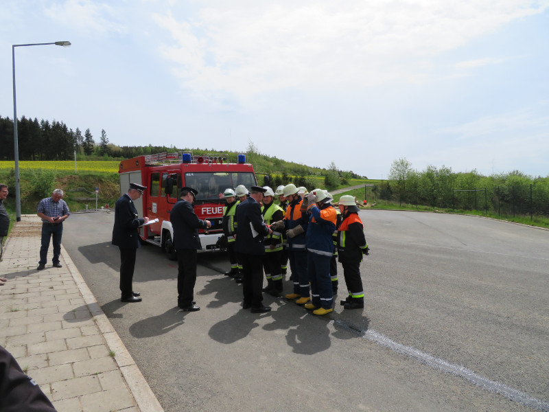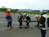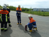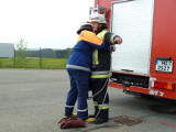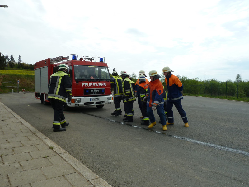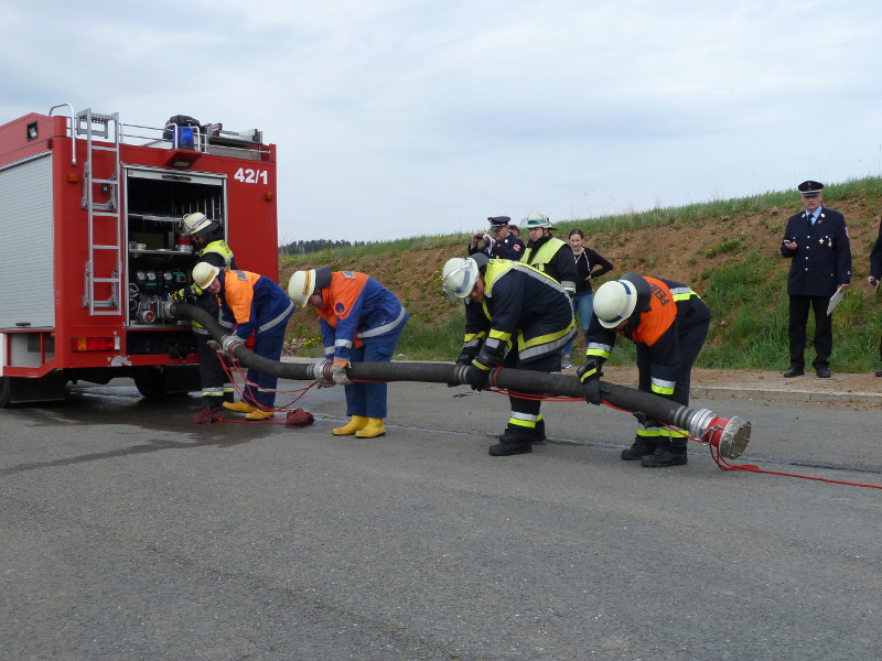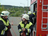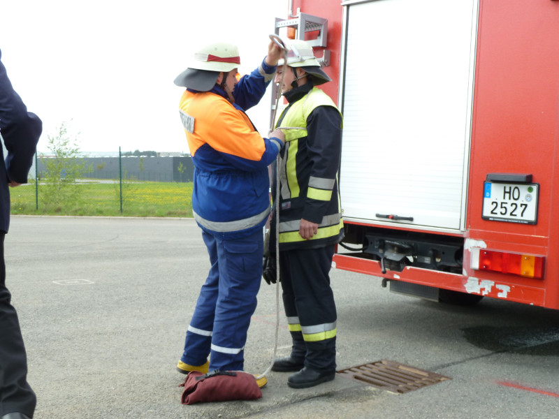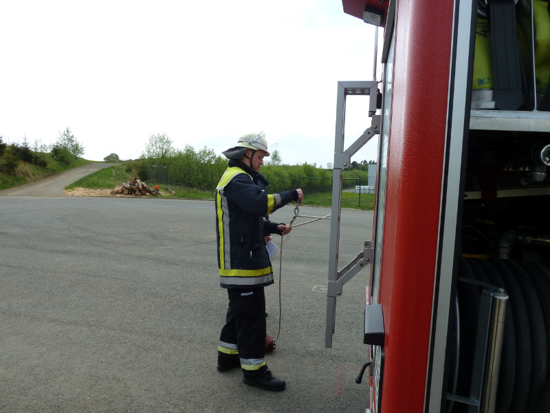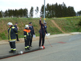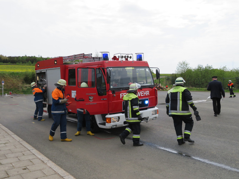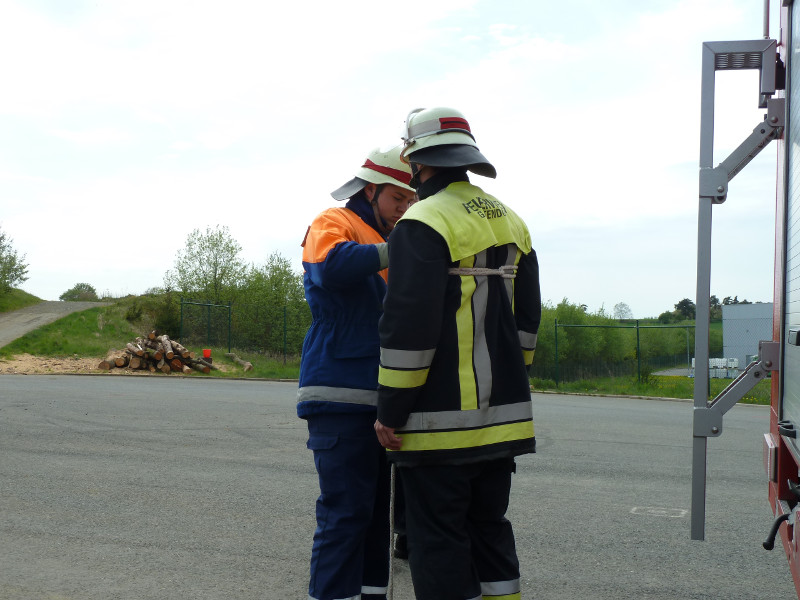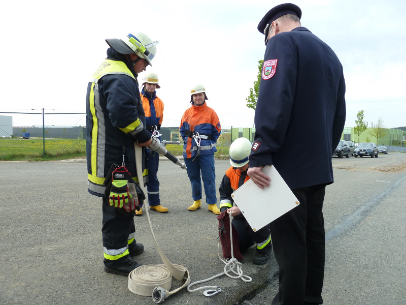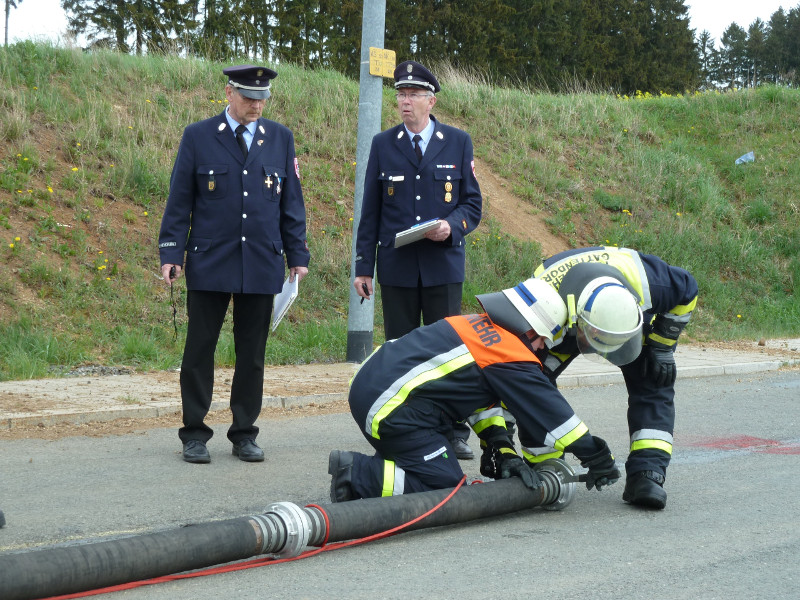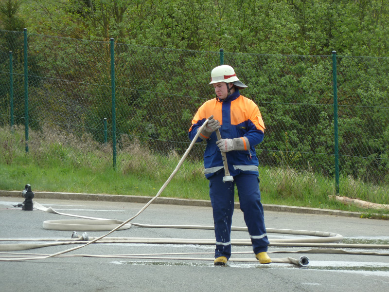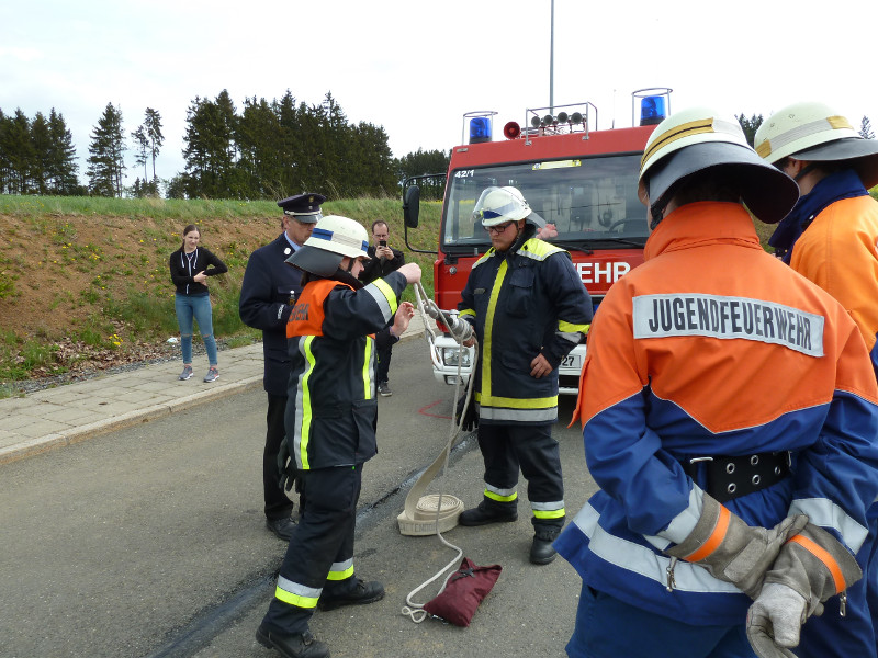 So galt es, neben dem Aufbau eines Löschangriffs mit drei Strahlrohren, eine Saugleitung zu Kuppeln, Fragen aus dem Aufgabengebiet der Feuerwehr zu beantworten und verschiedene Knoten vorzuführen.