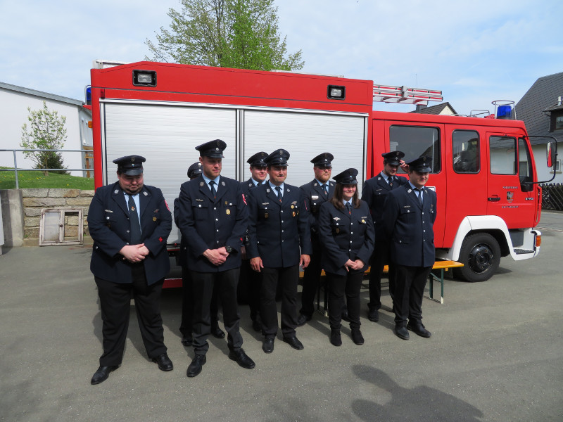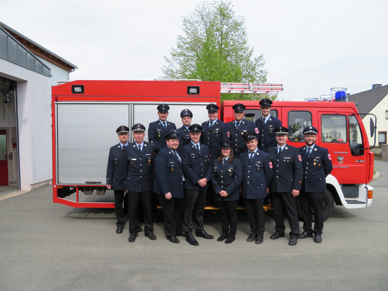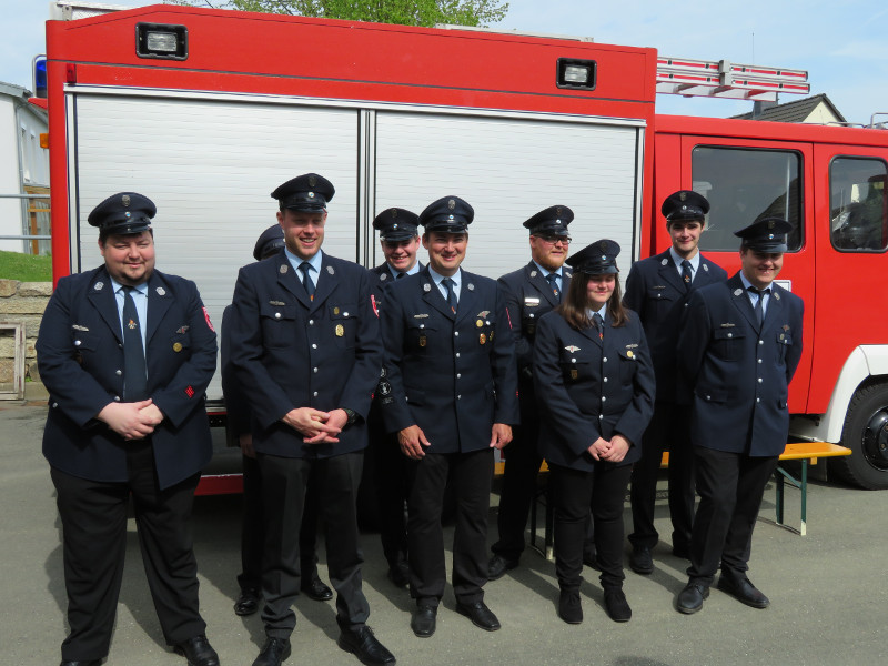 Das Gruppenbild zeigt die erfolgreichen Feuerwehrler sowie die Schiedsrichter: Walther Frisch, Kreisbrandmeister Gerhard Schmidt, Tobias Rödel, Andreas Steinhäußer, Tobias Steinhäußer, Marco Kranich, Christoph Heller, Sophia Markstein (FF Gumpertsreuth), Jeffrey Schmittnägel, Michael Degenkolb, Johannes Michel, Kreisbrandmeister Phillip Kemnitzer, Kommandant Christian Steinhäußer