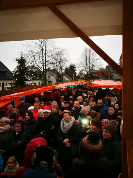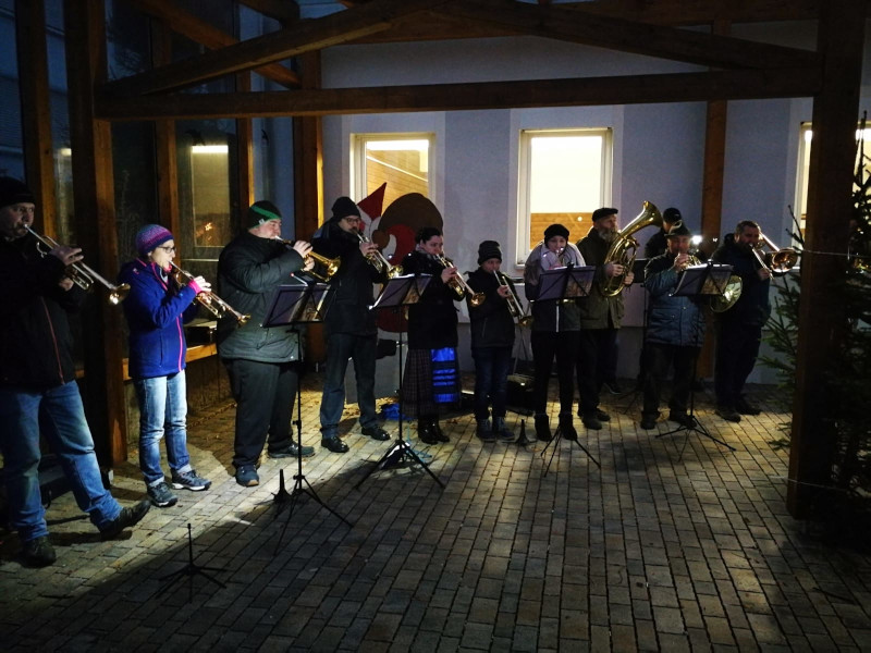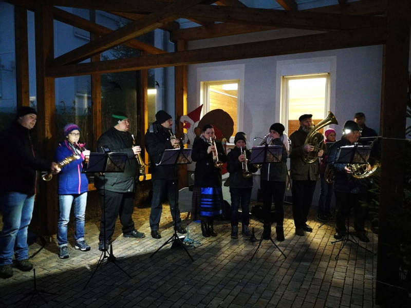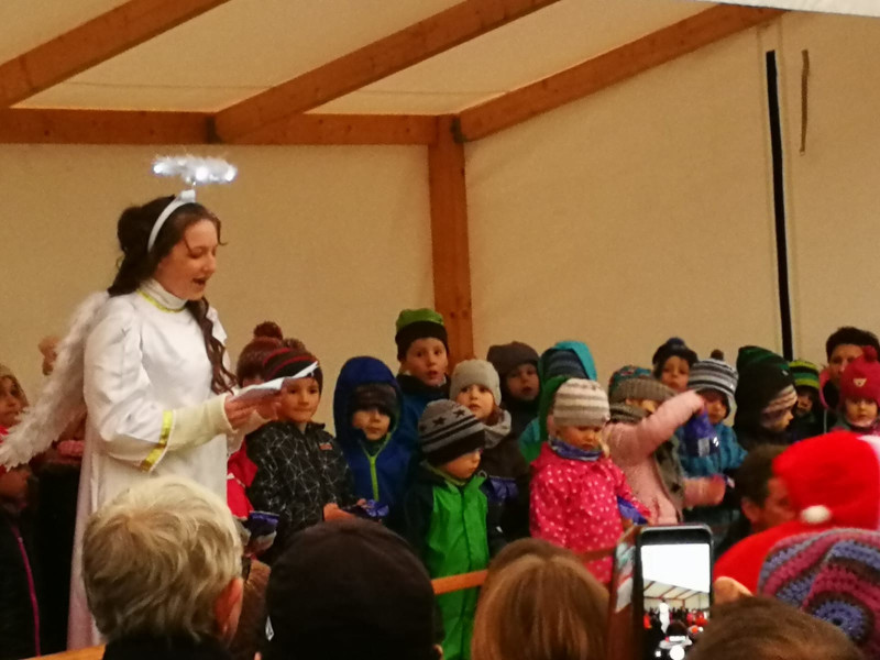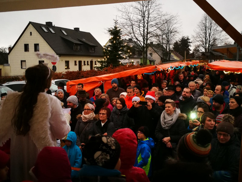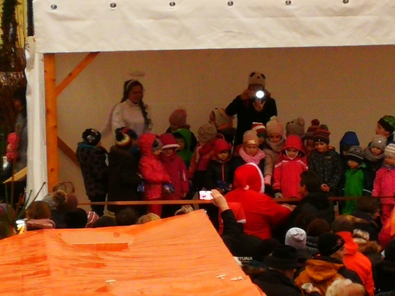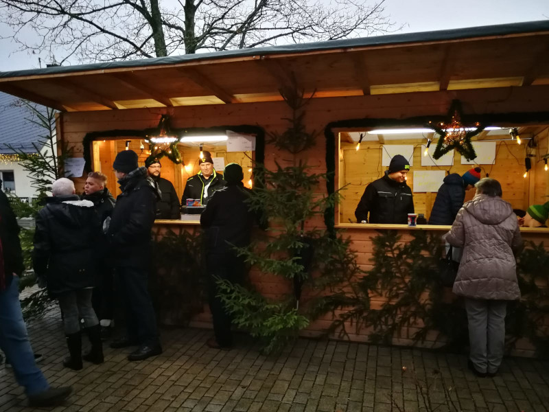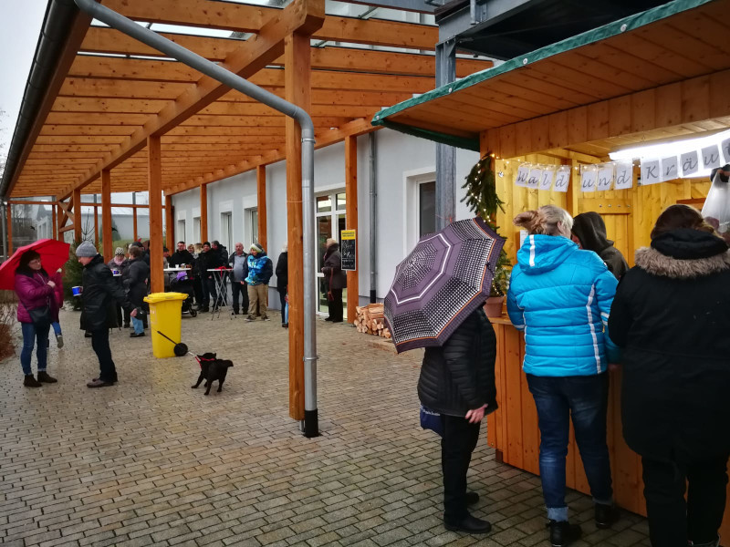 Das Wetter spielte leider beim diesjährigen Gattendorfer Adventsmarkt nicht so richtig mit. Doch auch bei eher nasskaltem statt winterlichem Wetter kamen zahlreiche Gattendorfer zum Festplatz an der alten Schule. Die Kindergartenkinder sangen den Besuchern einige extra einstudierte Lieder vor, der Posaunenchor sorgte mit adventlicher Musik für die richtige Atmosphäre. Und auch das Christkind und der Nikolaus mit einem prall gefüllten Sack voller Geschenke kamen vorbei.