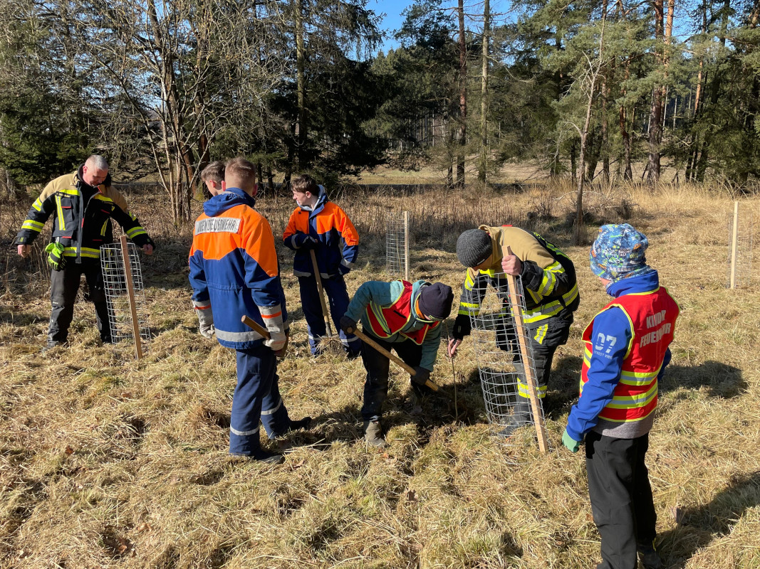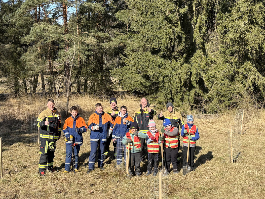 Mit tatkräftiger Unterstützung unserer Kinderfeuerwehr Löschraketen haben unsere Jugendlichen insgesamt zehn Ahorn- und Eschenbäume für den guten Zweck gepflanzt.