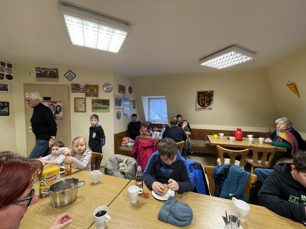 Der Treffpunkt war am Gerätehaus, von wo aus die Wanderung über Waldfrieden nach Oberhartmannsreuth führte. Dort konnte man sich bei einer kleinen Stärkung in Form von Glühwein und Plätzchen gemütlich stärken. Anschließend ging es über Oberhöll zurück zum Gerätehaus.